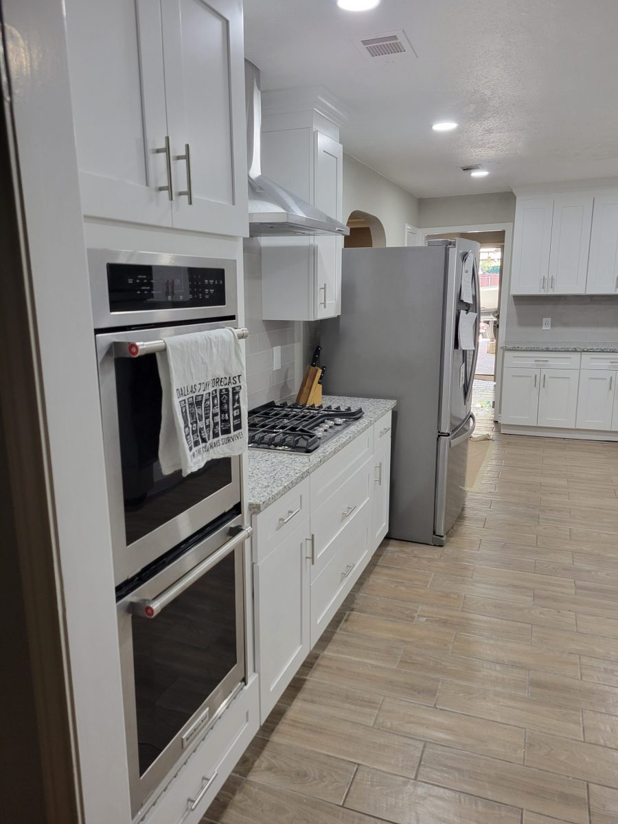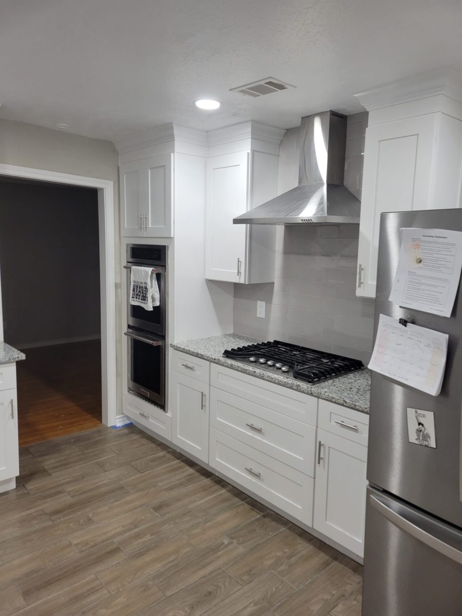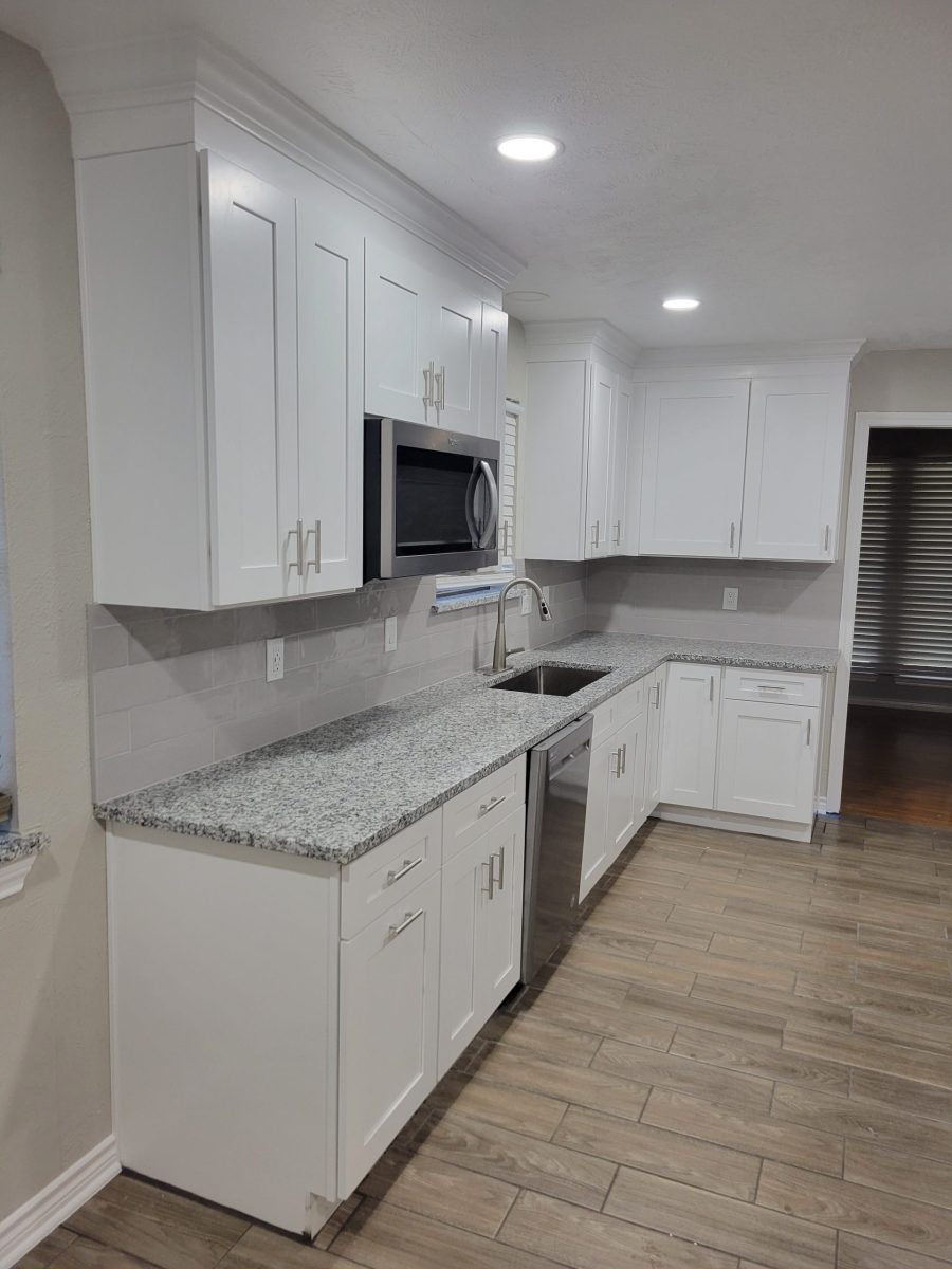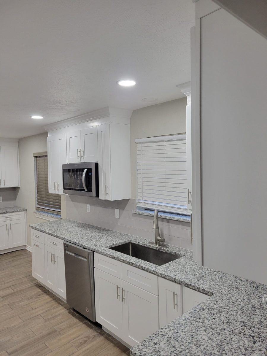 In this project, we have changed the kitchen cabinets countertops, and appliances. We also have raised the ceiling.